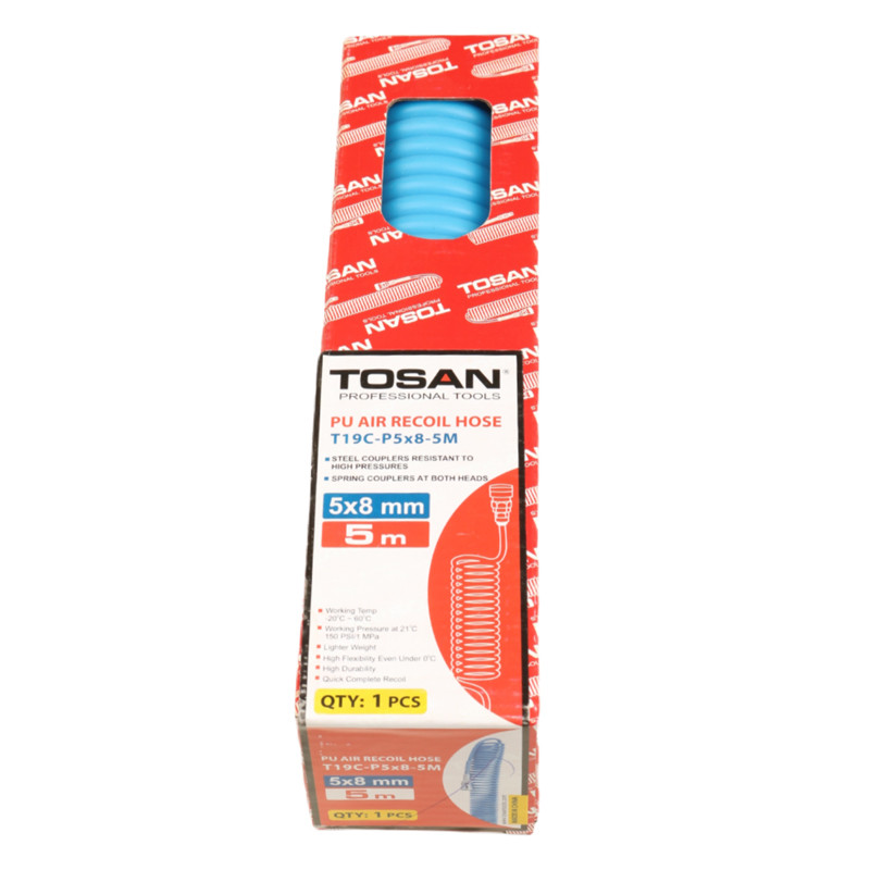 شلنگ فنری ابزاری جهت انتقال هوای فشرده میباشد که به صورت فنری پیچیده شده و رابط بین منبع باد که غالبا کمپرسور و ابزار بادی مانند میخ کوب، منگنه کوب، بکس بادی، پیستولههای بادی و.... می باشد که این دورا به هم متصل میکند.این نوع شلنگ به شلنگ تلفنی نیزمعروف است. شلنگهای فنری (تلفنی) براساس متراژشان دسته بندی میشود تا در صنایع مختلف با توجه به نیازاستفاده شود. شلنگهای فنری دارای انواع مختلفی ازنظر رنگ وسایز هستند. طول شلنگ وضخامت آن بایدمتناسب با ابزارهای مورداستفاده انتخاب شوند. البته بیشترطول شلنگ مدنظر قرارمیگیرد. شلنگ فنری توسن دارای طول 5 متر است. شلنگ فنری باید ازپلی اورتان باشد چرا که بهترین متریال برای این نوع شلنگ میباشد. جنس شلنگ فنری توسن ازمواد اولیه پلی یورتان (PU) بوده که این جنس قابلیت انعطاف بالا و دارای مقاومت بالادرمقابل خراشیدگیها ازقبیل ساییده شدن شلنگ برروی زمین وغیره میباشد. از مزایای دیگرمواد پلی یورتان به مقاومت بالای آنها دربرابرسرما و گرما میتوان اشاره نمود که باعث افزایش عمرشلنگ فنری نیزمیشود به علت استفاده 100 درصدی ازمواد پلییورتان ، این شلنگ فنری به هیچ عنوان خاصیت فنری خود را ازدست نمیدهد وازحالت فنری بودن خود خارج نمیشود. ازدست ندادن خاصیت فنری، طول و انعطاف مناسب و سایر مواردی که اشاره گردید باعث شده است تا بتوان ازاین شلنگ درکارگاههای تعمیرخودرو، کارواشها و ... استفاده نمود. همچنین شلنگ فنری توسن درکارگاههای صنایع چوب، مکانیکیها، درخطوط مونتاژ کارخانجات، کارهای ساختمانی نظیرنقاشی ودکوراسیون، کارواش، خودروهای سنگین وهرجایی که یک ابزار بادی به کار می رود، یافت میشود. همیشه باید از سالم بودن شلنگ فنری قبل از استفاده اطمینان داشته باشید. شلنگ فنری به وسیله کوپلینگهای مخصوص به ابزار بادی و کمپرسور متصل میشوند، بنابراین کیفیت کوپلینگهای آن نیز مهم است و باید در زمان خرید به آن نیزتوجه شود. درانتهای این شلنگ یه عدد کوپلینگ اتصال با کیفیت با برند توسن و در سر دیگر این شلنگ یک عدد دنباله اتصال نصب شده تا براحتی بتوان ازاین ابزاراستفاده نمود. همچنین درقسمت اتصال این کوپلینگها ودنبالهها نیز از فنر مقاوم و قابل انعطاف استفاده شده تا ازهرگونه آسیب دراین قسمت جلوگیری شود واستقامت شلنگ افزایش یابد.