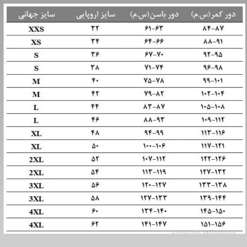 قد لباس زیر مچ پا