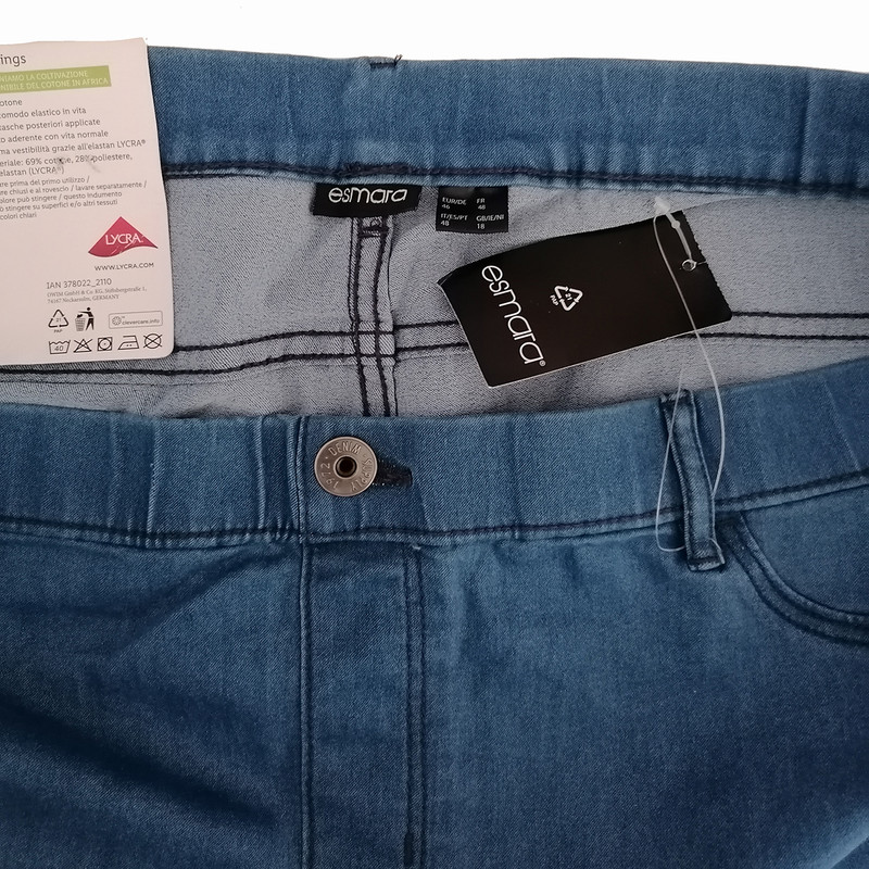 شلوار جین اسمارا مدل لگینگ آمیخته ای از 69 درصد نخ و پنبه و 28 درصد پلی استر و 3 درصد الاستین می باشد و چون بر چسب کیفیت دارد هیچگونه حساسیتی ایجاد نمی کند. لازم به توضیح است سایزبندی این لباس بر اساس سایزهای اروپایی یورو ( EUR ) می باشد و نوع استایل اصلی در عکس ها نشات دهنده جذب یا آزاد و یا بلند و کوتاه بودن لباس است . در کل سایز لباس های ایرانی نسبت به سایزهای آلمانی ( EUR ) در اکثر مواقع یکی نیست. به طور کلی برای انتخاب لباس آلمانی شما باید یک سایز از سایز لباس ایرانی خود را کم کنید به عنوان مثال اگر در سایز ایرانی XL می پوشید باید در سایز آلمانی L را انتخاب کنید حتما جدول تبدیل سایزهای ایرانی به آلمانی را در قسمت عکسها مطالعه بفرمایید...لطفا با رنگهای مشابه بشویید و از مواد شوینده رنگی استفاده کنید