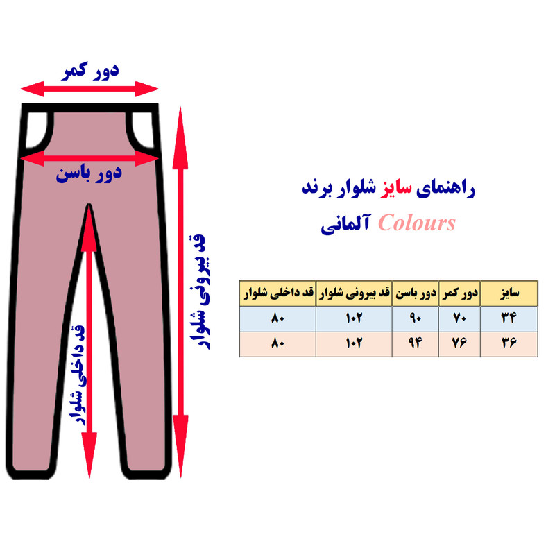 شلوار جین زنانه برند Colours از برندهای معروف و فوق العاده با کیفیت آلمانی می باشد. این شلوار آلمانی از 97 درصد کتان و 3 درصد الاستین ساخته شده است. این شلوار آلمانی در برابر زانوافتادگی و ثبات رنگ بسیار مقاوم می باشد. با توجه به متفاوت بودن سایز شلوارهای ایرانی و اروپایی و... حتما به تصویر پیوست این کالا در مورد راهنمای انتخاب سایز، دقت نمایید.