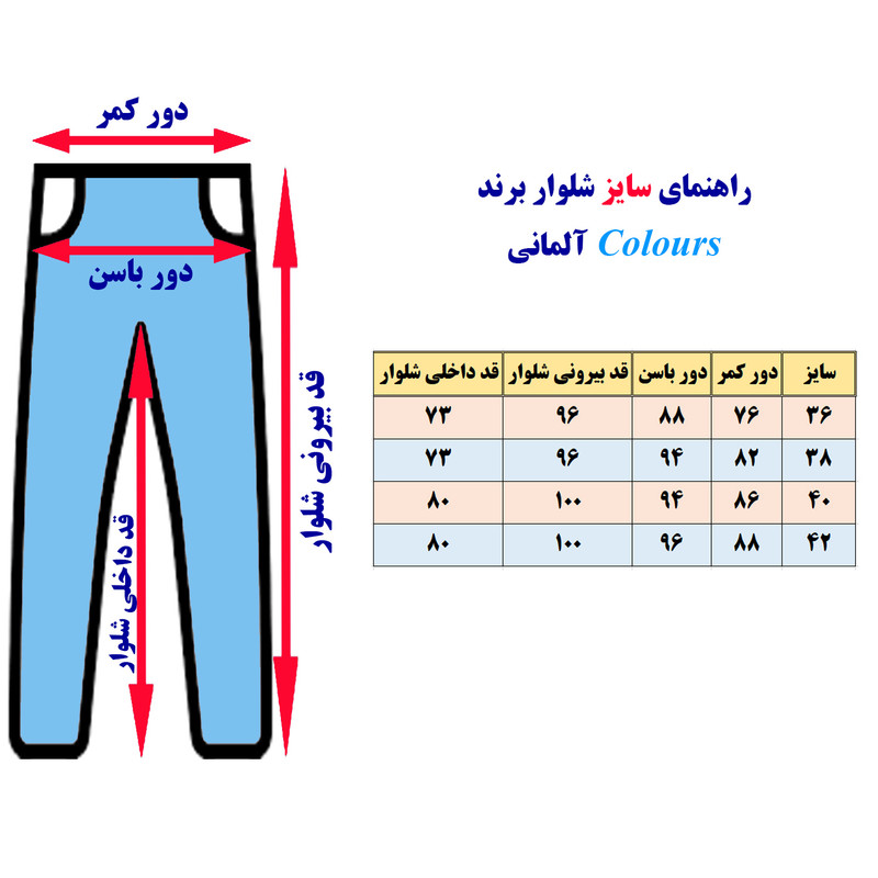شلوار جین کتان (مدل سنگ شور) برند Colours از برندهای معروف و فوق العاده با کیفیت آلمانی می باشد. این شلوار آلمانی از 98 درصد کتان و 2 درصد الاستین ساخته شده است. استفاده از الاستین در این شلوار موجب مقاومت در برابر پارگی و زانو افتادگی می شود. همچنین پایین دم پای این شلوار دارای زیپ بوده که زیبایی آن را دوچندان نموده و از سایز شلوارها متمایز می سازد. با توجه به متفاوت بودن سایز شلوارهای ایرانی و ا...