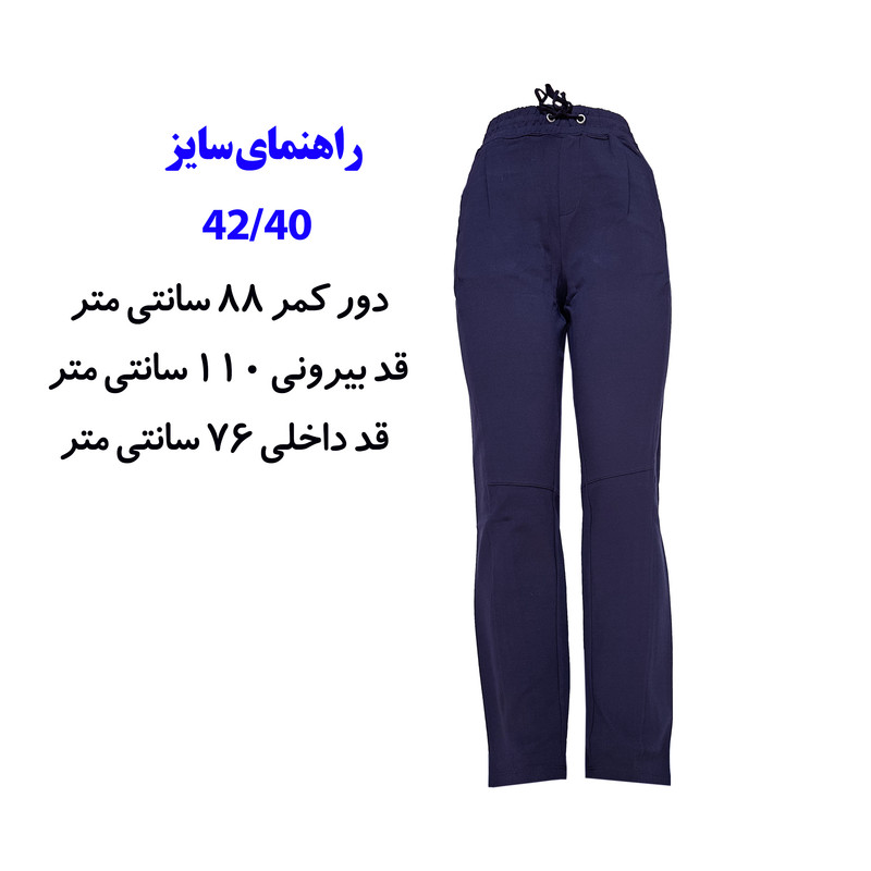 شلوار زنانه رنگ سرمه ای تیره با ضخامت متوسط مناسب استفاده در بیرون منزل و مهمانی ها می باشد. این شلوار تولید کشور آلمان می باشد که دارای کمر کشی دارای بند تنظیم سایز می باشد. این شلوار آلمانی از 57 درصد نخ و 38 درصد پلی استر و 5 درصد الاستین تشکیل شده است.