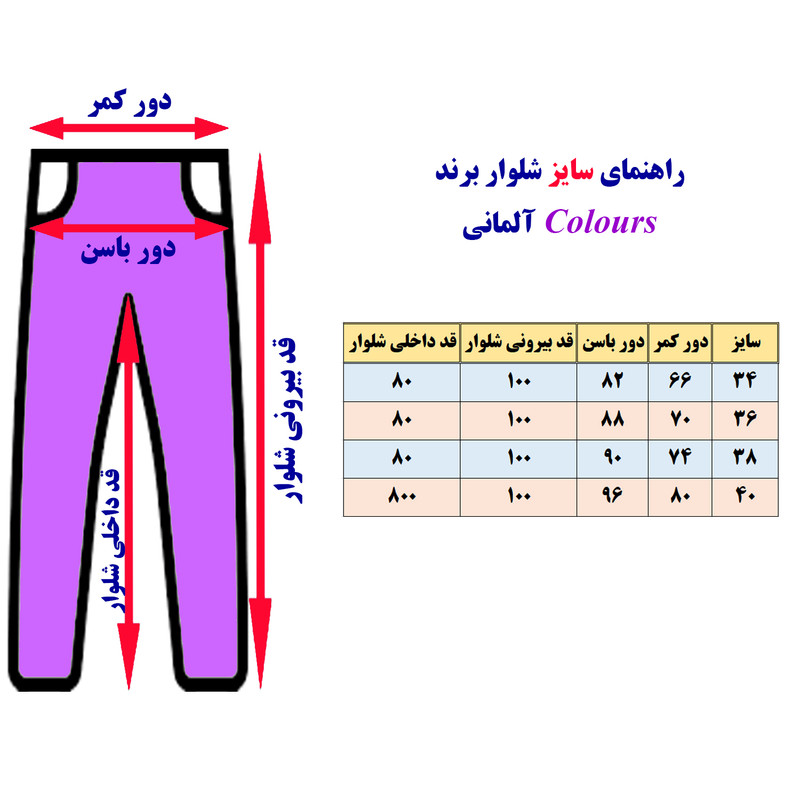 شلوار کتان برند Colours از برندهای معروف و فوق العاده با کیفیت آلمانی می باشد. این شلوار آلمانی از 98 درصد کتان و 2 درصد الاستین ساخته شده است. استفاده از الاستین در این شلوار موجب کشسانی نسبی و مقاومت بالا در برابر پارگی و زانو افتادگی می شود. با توجه به متفاوت بودن سایز شلوارهای ایرانی و اروپایی و... حتما به تصویر پیوست این کالا در مورد راهنمای انتخاب سایز، دقت نمایید.
