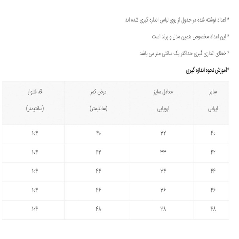 جزئیات | شلوار مردانه پارچه کتان اعلا مناسب برای تمام فصول طول شلوار 104 مدل با قد 180 و وزن 78 سایز 44 پوشیده است |