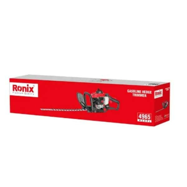 شمشاد زن بنزینی رونیکس مدل 4965 برای هرس شمشادهای بلند با شاخههای ضخیم استفاده میشود. شمشاد زن بنزینی رونیکس مدل 4965 با موتور بنزینی دو زمانه با حجم 22/5 سی سی و توان 0/8 اسب بخار و تیغه 70 سانتیمتری جهت اصلاح حرفه ای انواع بوته و درختچه ها کاربرد دارد. طراحی ارگونومیک متناسب با موقعیت مچ دست کاربر برای استفاده راحتتر در جهات گوناگون و موتور با آلایندگی بسیار کم و با حداقل میزان تولید بو و دود از دیگر ویژگی های این شمشاد زن بنزینی است.