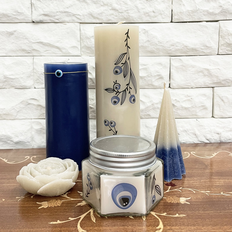 شمع استوانه مدل چشم نظر مجموعه 5 عددی