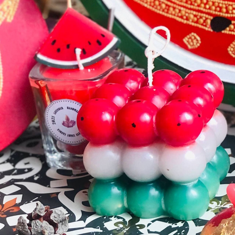 شمع دستساز دکوراتیو نورچشم مدل روبیک طرح هندوانه با ظاهری جذاب و مدرن مناسب شب یلدا ، روشن کردن شمع برای آرامش و زیبایی محیط نیز بسیار با اهمیت است.