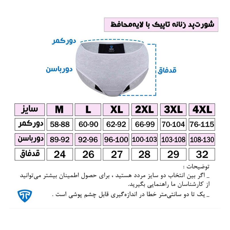 شورت‌پد تاپیک با فناوری انحصاری پد جاذب مخصوص بانوان میباشد و با جذب رطوبت باعث جلوگیری از نفوذ خون‌ به لباس شده است.