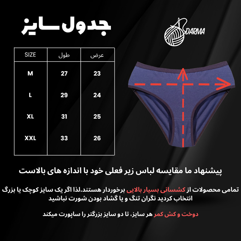 شورت های دخترانه دارما رو از نخ پنبه اعلای ایرانی با تکنولوژی بافت بروز تولید کرده ایم .همچنین درصد کمی لاکرا برای کشسانی و ایستایی بهتر به محصول اضافه شده است.از ویژگی های این محصول: یک لایه اضافه نخ پنبه 100 درصد در قسمت فاق ، کش اروپایی با کشسانی بالا، رنگ های به کار رفته در بافت نخ کاملا آنتی باکتریال میباشند.