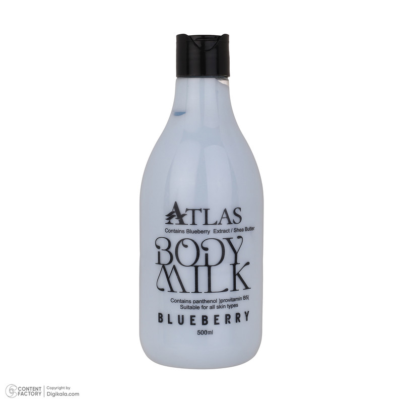 شیر بدن اطلس مدل Blueberry مناسب انواع پوست حجم 500 میلی لیتر