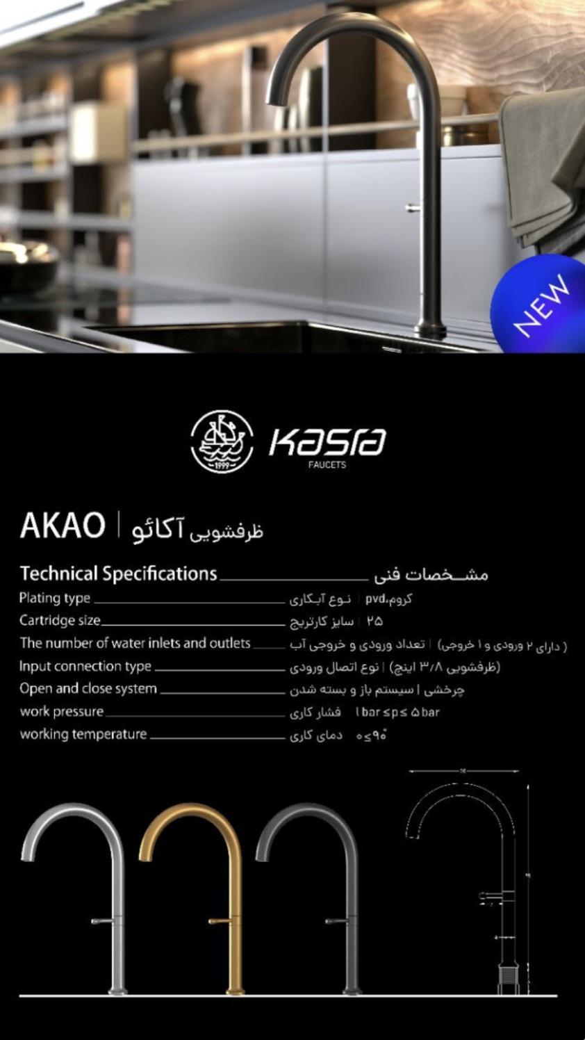 شیر ظرفشویی آکائو – اوج طراحی، نهایت عملکرد جدیدترین محصول از برند کسری، شیر ظرفشویی آکائو، با طراحی مدرن، کیفیت ساخت بینظیر و رنگبندی منحصربهفرد، تجربهای متفاوت در فضای آشپزخانه شما ایجاد میکند. آبکاری مقاوم با تکنولوژی PVD زاویه چرخش کارتریج: ۱۱۰ درجه سیستم باز و بسته شدن: چرخشی فشار کاری: از ۱ تا ۵ بار دمای کاری: ۰ تا ۹۰ درجه سانتیگراد کارتریج ۲۵ ، با ۲ ورودی و ۱ خروجی اتصال ورودی رزوهای ⅜ اینچ