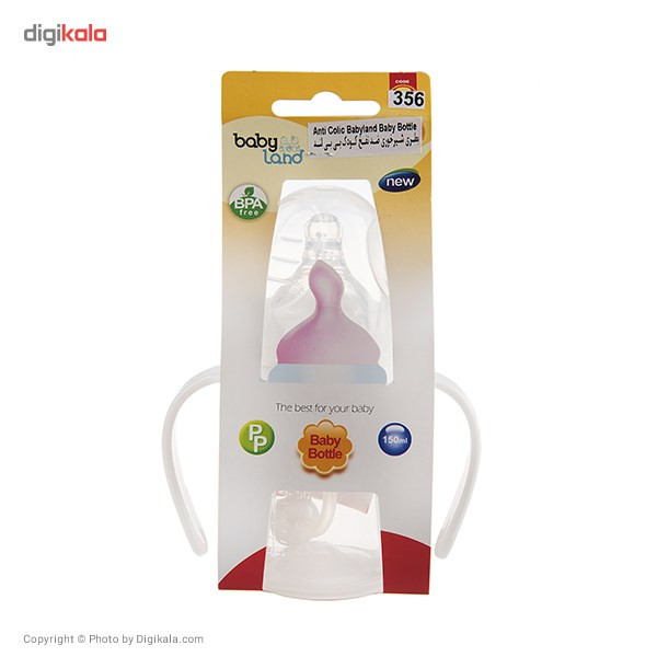 برخی کودکان به دلیل مشکلات مادرزادی توانایی مکیدن شیر از سینه مادر را ندارند و یا شیر مادر برای تغذیه آنها کافی نیست. در چنین شرایطی نیاز به استفاده از شیر خشک است و بنابراین استفاده از یک شیشه شیر استاندارد ضروری به نظر میرسد. شیشه شیر Baby Land مدل 356، با ظرفیت 150 میلی لیتر و وزن 90 گرم از جنس پلاستیک است. این محصول در حالت پر شده در حدود 250 گرم وزن دارد که با طراحی ارگونومیکی که دارد و با کمک دو دستگیره پلاستیکی در طرفین، استفاده از آن را برای خود کودک آسان کرده است. این طراحی همچنین به جذابیت بصری محصول نزد کودک افزوده است که باعث میشود کودکان میل بیشتری به شیر خوردن پیدا کنند. این شیشه شیر دارای یک در پلاستیکی عروسکی برای تمیز نگه داشتن سری شیشه شیر و درجه بندی روی بدنه شیشه است. سر این محصول، بادامی شکل از نوع ارتودنسی است که مناسب کودکانی با لثههای ضعیفتر است. همچنین در طراحی این نوع سر شیشهها به روند رشد فک، لثه و دندانهای کودک توجه شده است. مهمترین ویژگی این شیشه شیر داشتن یک لوله پلاستیکی داخل شیشه است که موجب میشود کودک در هنگام خوردن شیر نفخ نکند. بهترین روش برای شستوشوی این شیشه شیر شستوشو با دست و فرچه مخصوص است.