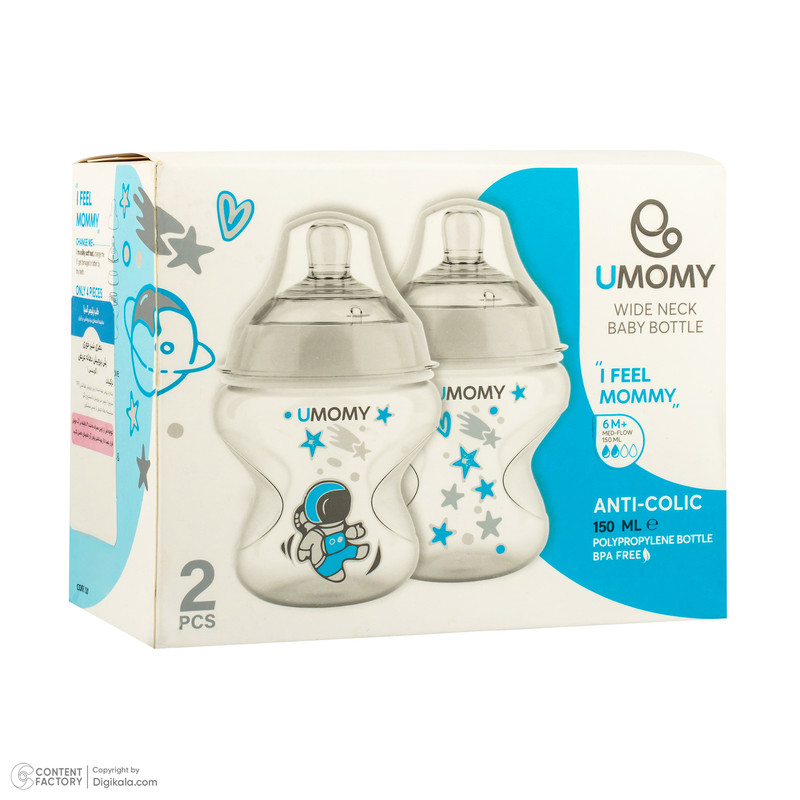 شیشه شیر یومامی مدل Anti Colic گنجایش 150 میلی لیتر - بسته 2 عددی