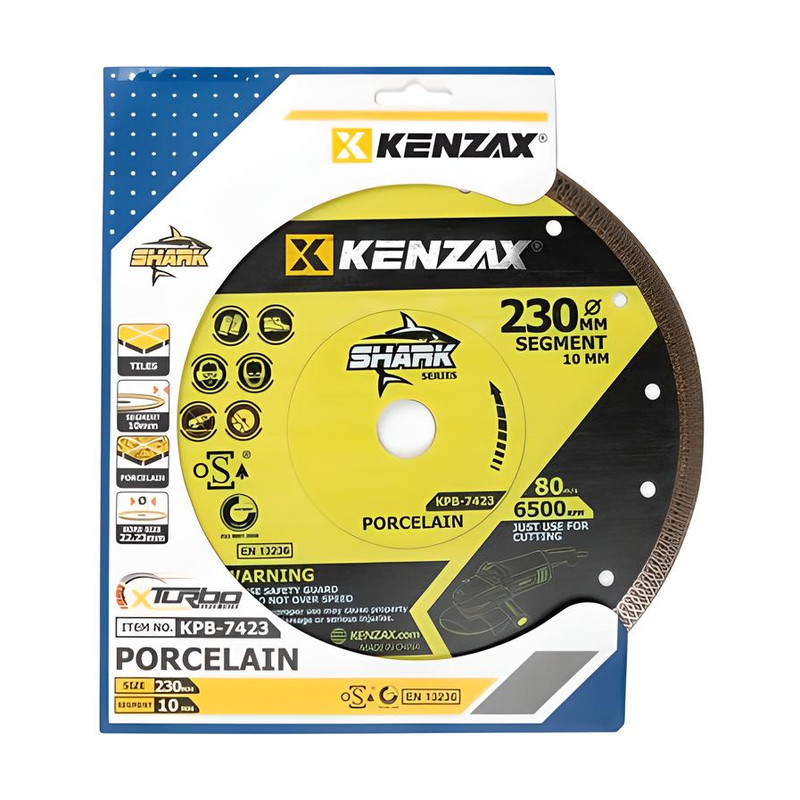 تیغ برش سرامیک مدل KPB-7423 دارای سرعت مطلوب و یکنواخت با کمک فناوری Fast Cut که با تکنولوژی هات پرس (Hot Press) و فشردگی بالا تولید شده است می باشد. این تیغ برش سرامیک مجهز به تیغ الماسه و راندمان مناسب برای کار های طولانی با برش های یکدست و صاف طراحی شده است.حداکثر سرعت گردش این تیغ سرامیک 6500 دور در دقیقه و سرعت قابل تحمل این تیغ سرامیک بر ۸۰ متر بر ثانیه تعریف شده است. پرسلان بر توربو مدل KPB-7423 دارای قطر 230 میلی متر با عرض سگمنت 10 میلی متر، ساخته شده منطبق بر تکنولوژی های روز دنیا از جنس استیل مقاوم در برابر خمیدگی و خوردگی می باشد و بالا ترین کیفیت را هنگام برش های طولانی دارد