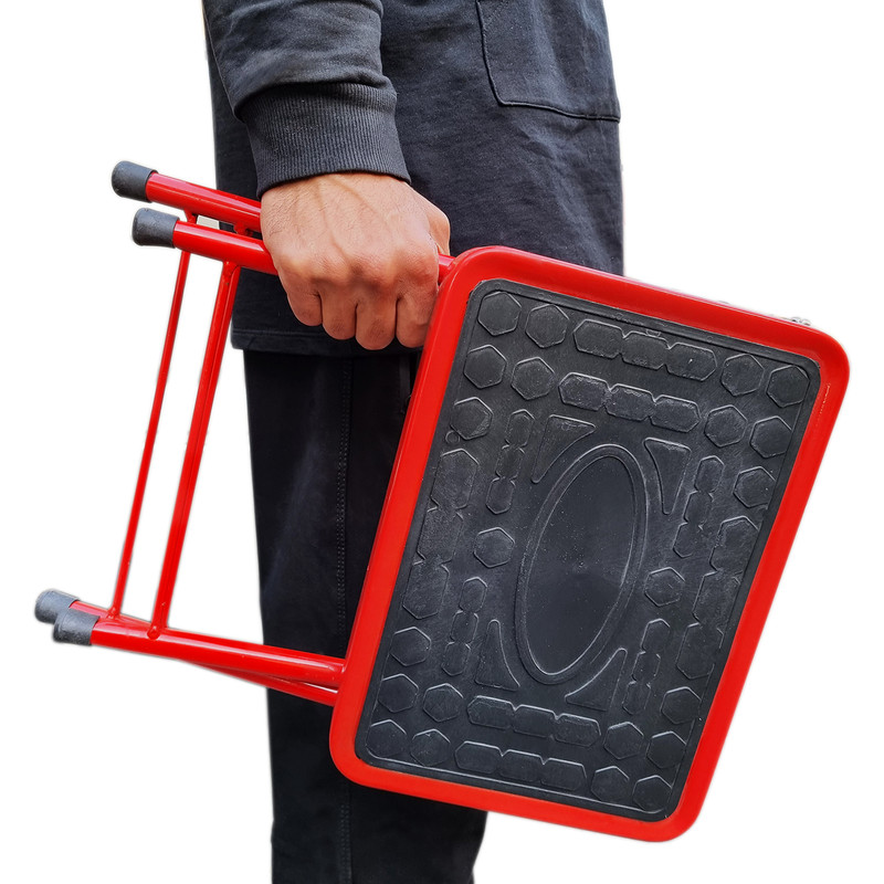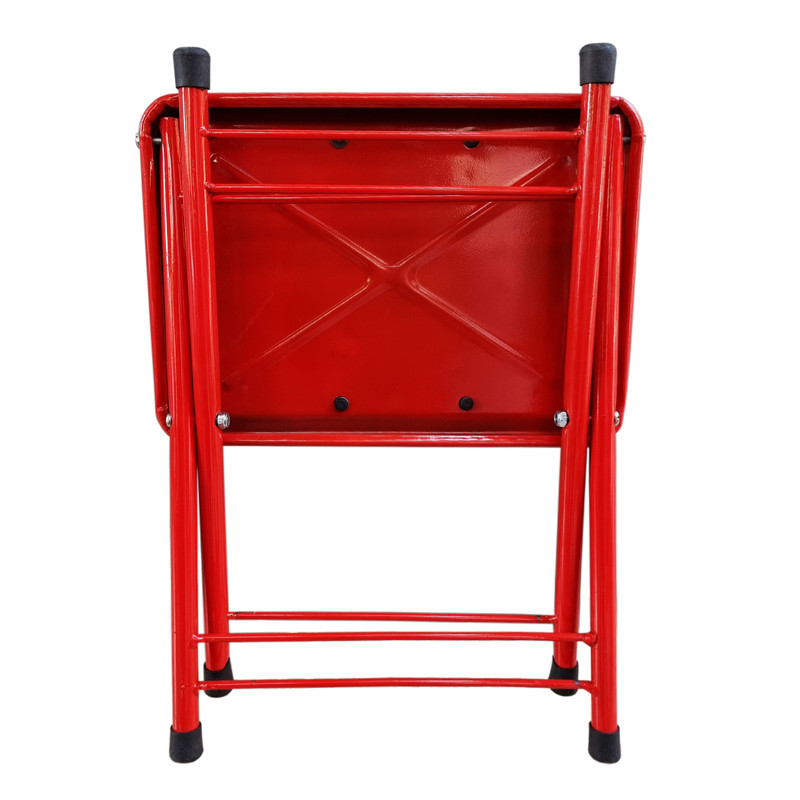 این چهارپایه فلزی تاشو از رنگ با کیفیت ساخته شده و با جوش CO که چند برابر قویتر از روشهای معمول اتصال است، مقاومتی بالا دارد. در قسمت زیرین چهارپایه پلاستیکهای مقاومی تعبیه شده تا تعادل آن حفظ شود. روی نشیمنگاه از پلاستیک فشرده استفاده شده که نشستن طولانی مدت را راحتتر میکند و از خستگی جلوگیری میکند. کف چهارپایه پهن ۲۰×۳۰ سانتیمتر و ارتفاع آن ۳۰ سانتیمتر است. به دلیل استحکام فوقالعاده، این چهارپایه را میتوان به عنوان نردبان نیز استفاده کرد. تعادل بالا و طراحی مستحکم آن امکان ایستادن راحت و مطمئن روی آن را فراهم میکند.