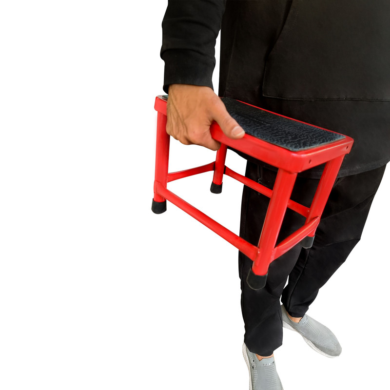 این چهارپایه فلزی که از رنگ با کیفیت ساخته شده است با جوش co که در مقایسه با دیگر روشهای اتصال قطعات چند برابر قوی تر است.در قسمت زیرین چهارپایه پلاستیکهای قوی قرار داده شده است تا تعادل نردبان راحفظ کند.بر روی قسمت نشیمنگاه ،پلاستیک فشرده شده قرار دارد تا برای نشتن طولانی مدت احساس خستگی به استفاده کننده از آن دست ندهد.کف این چهارپایه پهن است(20×30 سانتی متر) وارتفاع آن 30 سانتی متر است و به دلیل استحکام فوق العاده بالای آن میتوان از آن به عنوان نردبان نیز استفاده کرد.تعادل این چهارپایه بسیار بالا میباشد و میتوان به راحتی بر رون آن ایستاد.