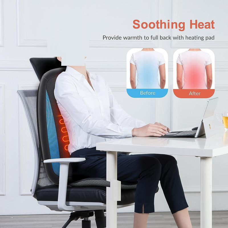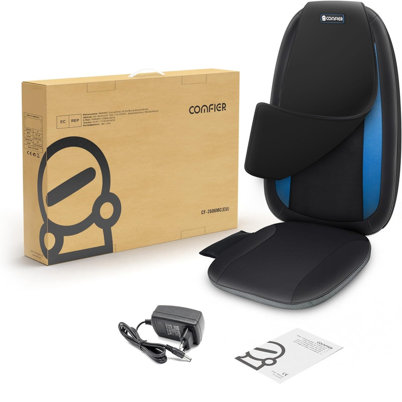 سایر توضیحاتماساژ عمقی قابل تنظیم: ماساژور شیاتسو دارای 4 سر ماساژ چرخشی شیاتسو است که سرهای ماساژور را در امتداد پشت به بالا و پایین فشار می دهد و باعث می شود که کل اکستندر کمر شل شود. ماساژور Comfier به تنش و همچنین گرفتگی یا انسداد عضلات کمک می کند. (2 سطح شدت قابل انتخاب).{ماساژ قابل تنظیم و 2 شدت شیاتسو} ماساژور کمر Comfier برای بافت عمیق کمر درد، چهار گره چرخان را ارائه می‌دهد که می‌توانند هم بالا و هم پایین حرکت کنند. این گره‌ها برای ارائه ماساژ بافت عمیق به گره‌ها و عضلات منقبض طراحی شده‌اند که باعث آرامش و کاهش استرس و خستگی در سراسر بدن می‌شوند. ماساژور صندلی Comfier همچنین دارای 2 سطح شدت شیاتسو قابل تنظیم است. ناحیه ماساژ تعریف شده توسط کاربر: با استفاده از این ماساژور پشت می‌توانید بین قسمت‌های ماساژ، قسمت بالایی پشت، پایین کمر و کل کمر یکی را انتخاب کنید. برای یک ماساژ شیاتسو دقیق، روکش صندلی به عملکرد نقطه ای نیز مجهز شده است. شما می توانید به راحتی و با دقت کمردرد را کاهش دهید. آرامش با گرم: این صندلی ماساژ گرمای دلپذیری را ارائه می دهد که گردش خون را تحریک کرده و آرامش بیشتری را فراهم می کند. بخاری اختیاری توسط سرهای ماساژور شیاتسو منتقل می شود. با این بالشتک ماساژ گرم کننده عمیق عضلات را آرام کنید. صندلی های ماساژور قابل حمل: این روکش صندلی شیاتسو را می توان در خانه استفاده کرد، درست مانند دفتر. تنها چیزی که نیاز دارید یک اتصال برق است. به راحتی می توانید صندلی ماساژور را به صندلی های مختلف وصل کنید. و در نتیجه از یک ماساژ دلپذیر لذت ببرید. انتخاب هدیه ای عالی برای خانواده و دوستان شما.این ماساژور لرزشی : یک تشک ماساژور یک ماساژور لرزشی را برای باسن، باسن و ران ها ادغام می کند که به شما کمک می کند عضلات ناحیه تحتانی را جذب کنید. شما می توانید در 3 شدت تغییر دهید.
