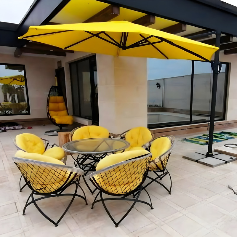 میز و صندلی باغی و ویلایی ساخته شده از پروفیل های صنعتی سبک و مقاوم و به منظور تضمین استحکام از جوش CO2 استفاده شده است. رنگ آمیزی این محصول به صورت کوره ای الکترواستاتیک بوده که مقاومت بالایی در شرایط جوی (زنگ زدگی) ایجاد می کند. طراحی ارگونومی این محصول به گونه ای بوده که برای نشستن های طولانی و استراحت انتخاب مناسبی می باشد. این محصول برای استفاده در محیط های باز، تراس، باغ، ویلا و ... بسیار مناسب است و معمولا در ست های 4 و 6 نفره خریداری میشود. قدرت و ضعف: مقاوم در برابر زنگ زدکی تحمل وزن 200 کیلوگرمی بسیار مقاوم طراحی زیبا استحکام بالا رنگ کوره ای ضدخش نشیمن بسیار راحت