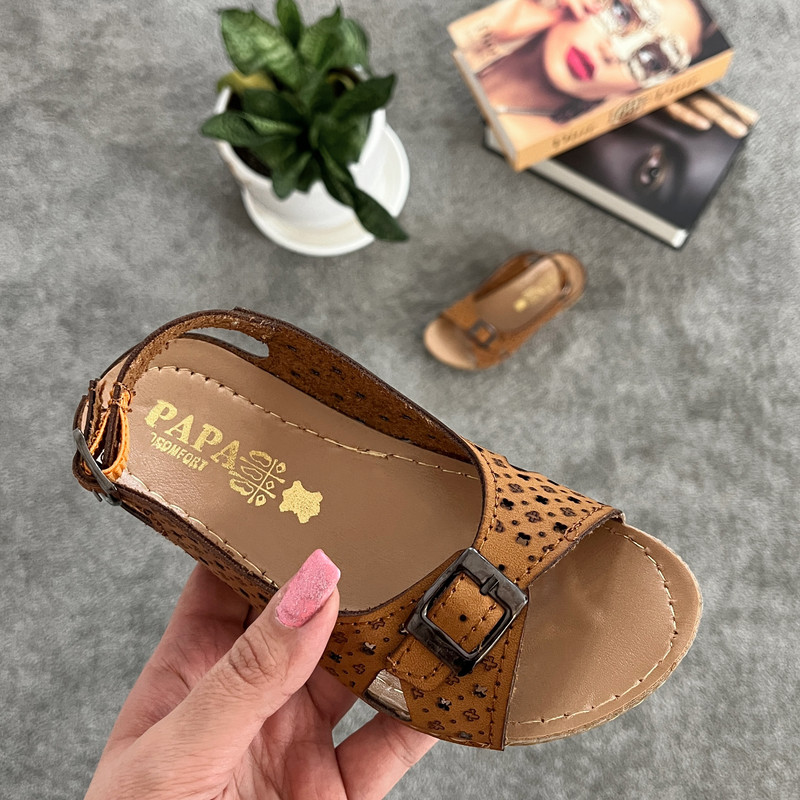 این صندل دخترانه پاپا ، یکی از مدل های جدید صندل های دخترانه میباشد. طراحی به روز این محصول به گونه ایست که علاوه بر آنکه از دوام بالایی برخوردار است ، نهایت راحتی را نیز برای شما به همراه دارد و توانسته نظرات زیادی را به خود جلب نماید. این محصول با بهره گیری از بهترین نوع زیره ( PU-RPM ) و رویه ی بسیار مقاوم و زیبا چرم مرغوب صنعتی ، انتخابی مناسب در میان صندل های دخترانه میباشد. همچنین این کالا به دلیل طراحی و رنگ بندی شاد خود جذابیت پای کودکان شما را چند برابر خواهد کرد.