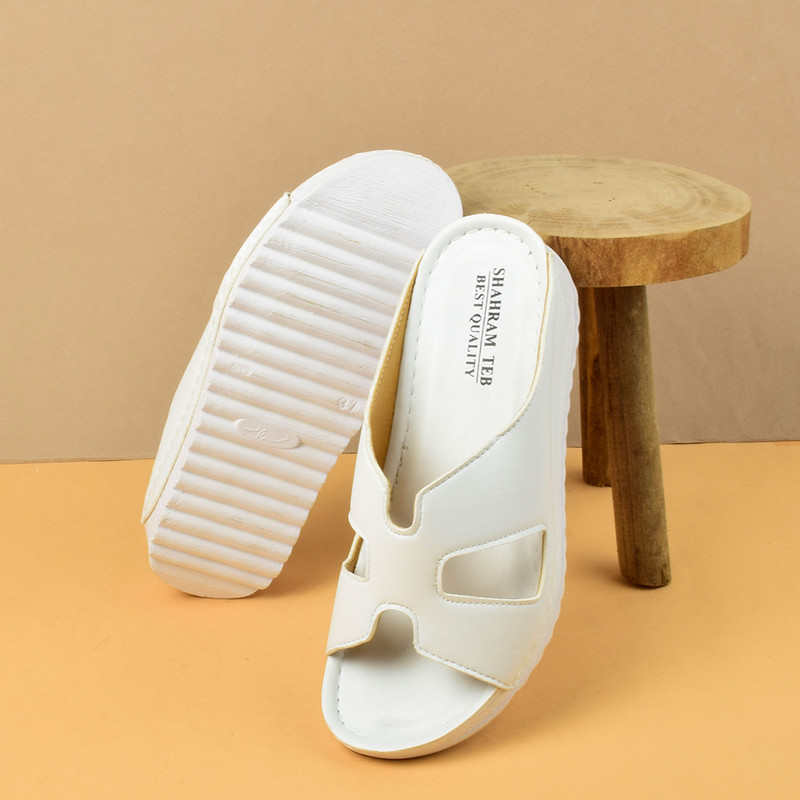 رویه این صندل از چرم صنعتی مرغوب تهیه شده است که با لمینت پفکی 1.5 میلی‌متر تقویت شده است. این ویژگی به دوام، انعطاف‌پذیری و راحتی بیشتر صندل کمک می‌کند. همچنین آستر کرم به‌کاررفته در داخل، حس نرمی و لطافت را برای پاهای شما به ارمغان می‌آورد.