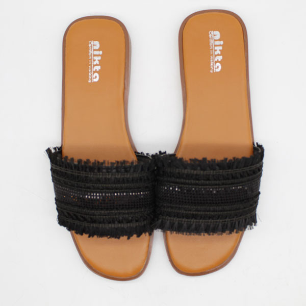 صندل روفرشی زنانه نیکتا مدل 28-4200 کد 1458 دارای زیره ای تخت از جنس PU پلی اورتان و رویه ای از جنس ترکیبی چرم مصنوعی و پارچه سنتی مکرومه و دارای آستر بسیار لطیف داخلی برای راحتی پوست پا است. کف این صندل بسیار نرم و راحت بوده و وزن نسبتا سبکی دارد.