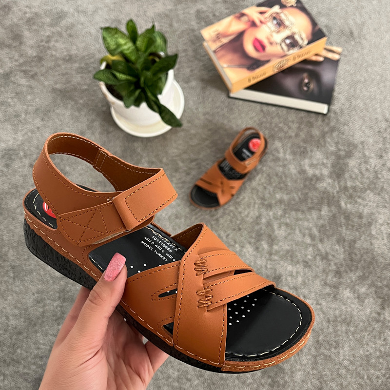 این صندل زنانه ، یکی از مدل های زیبا و فوق العاده راحت در میان صندل های زنانه پاپا میباشد. طراحی به روز این محصول به گونه ایست که علاوه بر آنکه از دوام بالایی برخوردار است ، نهایت راحتی را نیز برای شما به همراه دارد و توانسته نظرات زیادی را به خود جلب نماید. در زیره این محصول از پئ خار پاشنه استفاده شده است که همراه با کفی نرمی که در کنار آن قرار گرفته این محصول را به یک محصول فوق العاده راحت تبدیل کرده است .همچنین این محصول با بهره گیری از بهترین نوع زیره ( PU-RPM ) و رویه ی بسیار مقاوم و زیبا چرم مرغوب صنعتی ، انتخابی مناسب در میان صندل های زنانه میباشد.