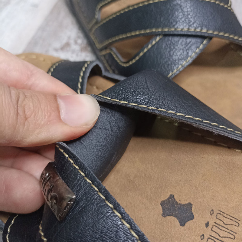 زیره این صندل مردانه از جنس PU و جنس رویه آن از چرم مصنوعی درجه یک می باشد. کف این صندل مردانه طبی بوده و جنس کف آن پشت چرم و دارای آستر داخلی برای راحتی پوست می باشد.
