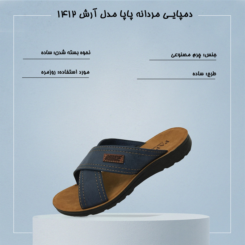 زیبایی و راحتی در یک دمپایی مردانه(صندل) از برند پاپا یک محصول ایدئال برای استفاده هنگام پیادهروی کوتاه و استفاده در منزل ایجاد کرده است. مشخصات دمپایی مردانه پاپا مدل 1412 رویه این دمپایی از چرم مصنوعی و به رنگ آبی کاربنی تهیه شده و دارای زیرهای راحت انعطاف پذیر و سبک است. زیره این دمپایی آرش 1412 از متریال خاص با ترکیبات ویژه تهیه شده که بیشترین امکان راحتی را برای پاها فراهم میکند. به علاوه طراحی رویه آن به نحوی است که پاها را به خوبی در بر میگیرد و با حمایت همه جانبه از پا موجب افزایش راحتی و کاهش خستگی پا میشود. برند پایا یکی از تولید کننده های مطرح در زمینه تولید کفش و صندل مردانه است. لوگوی برند پاپا در طرفین دمپایی نشان از تضمین کیفیت و مرغوبیت کالا است. قیمت دمپایی مردانه پاپا مدل آرش 1412 با توجه به کیفیت بسیار مقرون به صرفه است. اگر به دنبال دمپایی میگردید که اولین و بهترین گزینه شما برای استفاده روزمره باشد خرید دمپایی مردانه پاپا مدل آرش 1412 میتواند نیاز شما را برآورده کند.