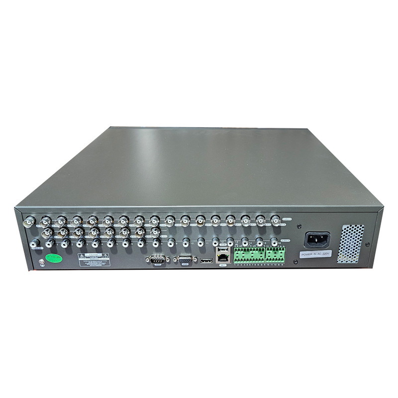ضبط کننده ویدئویی آنالوگ شارک 24 کانال دقت داشته باشید این dvr انالوگ بوده و از دوربین های ahd پشتیبانی نمیکند این dvr دارای محفظه 6 هارد بوده و شما میتوانید به آن 6 هارد وصل کنید که مجموعا 24 ترابایت میشود و مناسب مکان هایی است که کیفیت تصویر دوربین پایینی دارند و میخواهد به مدت 2 سال تصویر ضبط شده داشته باشند دارای 24 ورودی تصویر و 16 ورودی صدا دارای پورت hdmi و vga و 485 و پورت آلارم و 232 دارای خروجی 5 ولت و ورودی lan دارای پاور داخل خود یعنی این دستگاه را بدون آداپتور و مسقیم به برق وصل میکنید