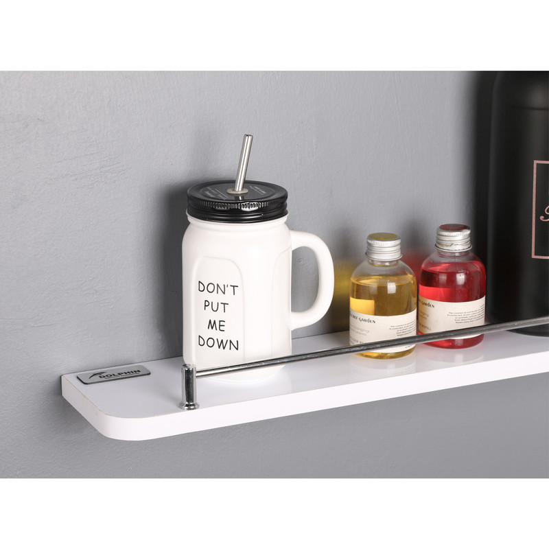 شلف دیواری «دلفین» ساخته شده از جنس پی وی سی با ضخامت 16 میلیمتر. این محصول داری طیف وسیعی از کاربرد است. در آشپزخانه برای قرار دادن شیشه و بطری ها، در اتاق برای نگهداری گلدان و لوازم دکوری ،در دستشویی و حمام، زیر آینه یا بصورت مجزا برای قرار دادن لوازم شوینده و آرایشی و... .نصب این محصول با 2 پایه فلزی که به همراه شلف است به سادگی انجام میپذیرد و در پوشی روی پایه قرار میگیرد که روی پیچ را بپوشاند. این شلف ضد آب است و میتواند مستقیما در معرض رطوبت و آب قرار بگیرد.