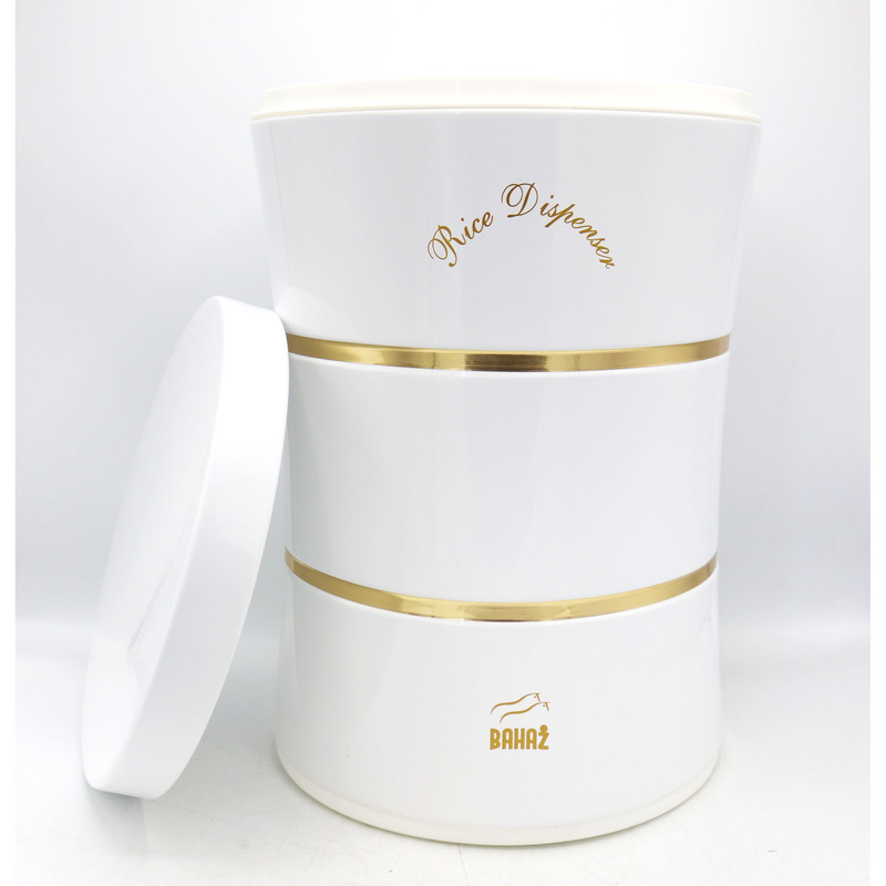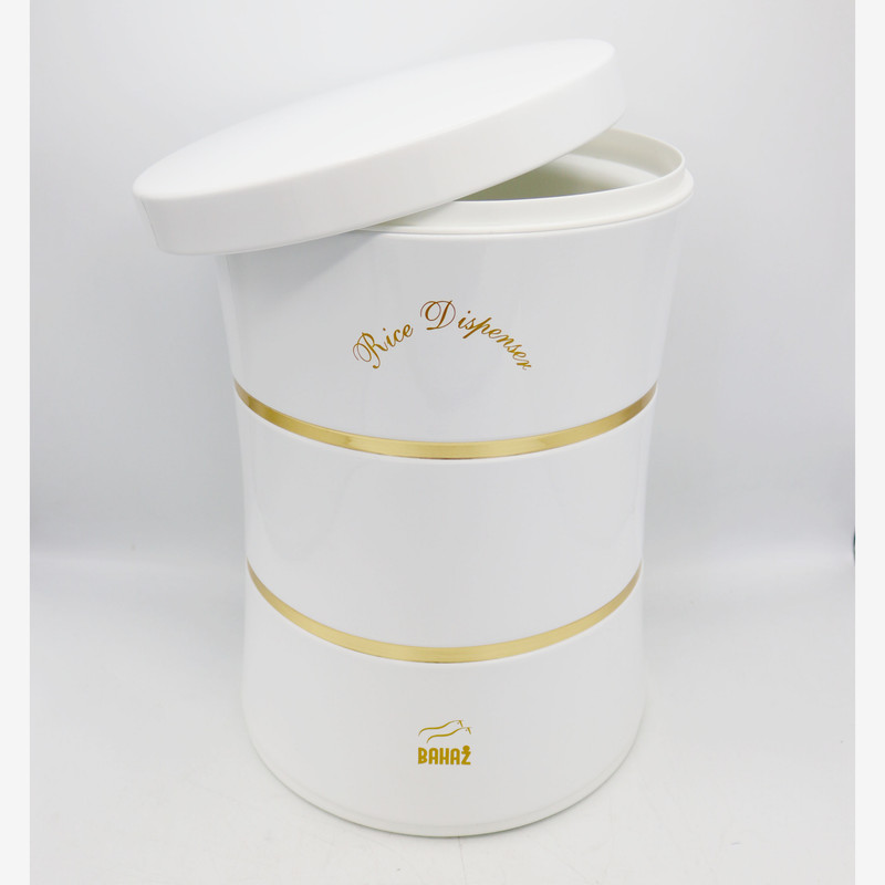ظرف برنج 10 کیلویی کمرباریک دو خط طراحی زیبا و متفاوت این محصول و فرم کمرباریک بدنه جلوه منحصر بفردی به آن بخشیده است و زینت بخش هر آشپزخانه ای می باشد.