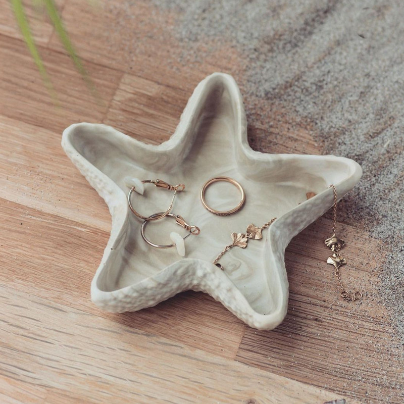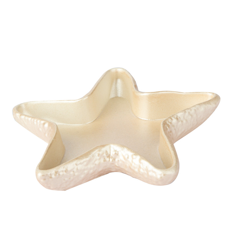 این ظرف تزئینی زیبا به شکل ستاره، از جنس سنگ مصنوعی ساخته شده و می‌تواند به عنوان نگهدارنده جواهرات و یا یک قطعه دکوراتیو در منزل شما استفاده شود. با طراحی منحصر به فرد و مدرن خود، می‌تواند جلوه‌ای خاص به هر محیطی ببخشد. این ظرف همچنین یک هدیه عالی برای عزیزانتان خواهد بود.