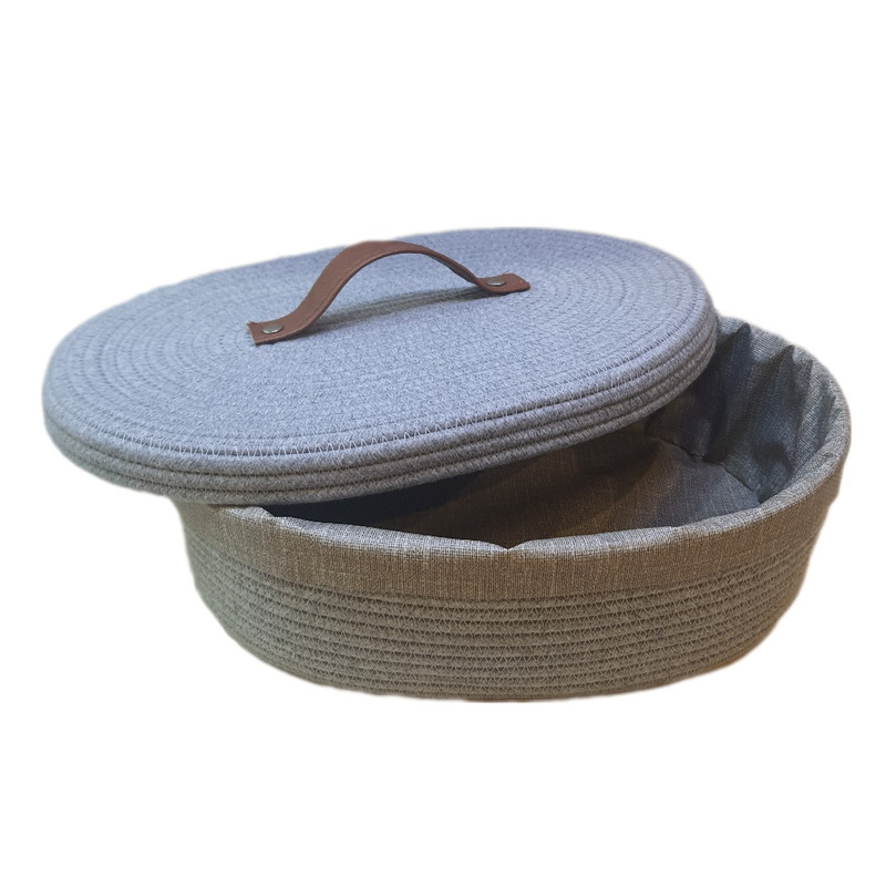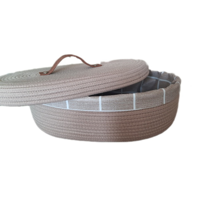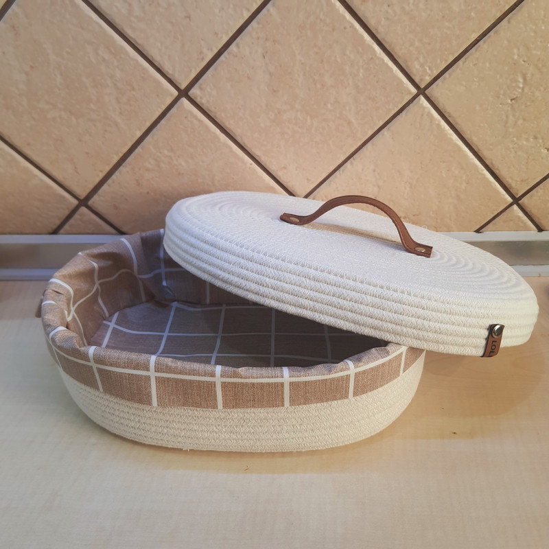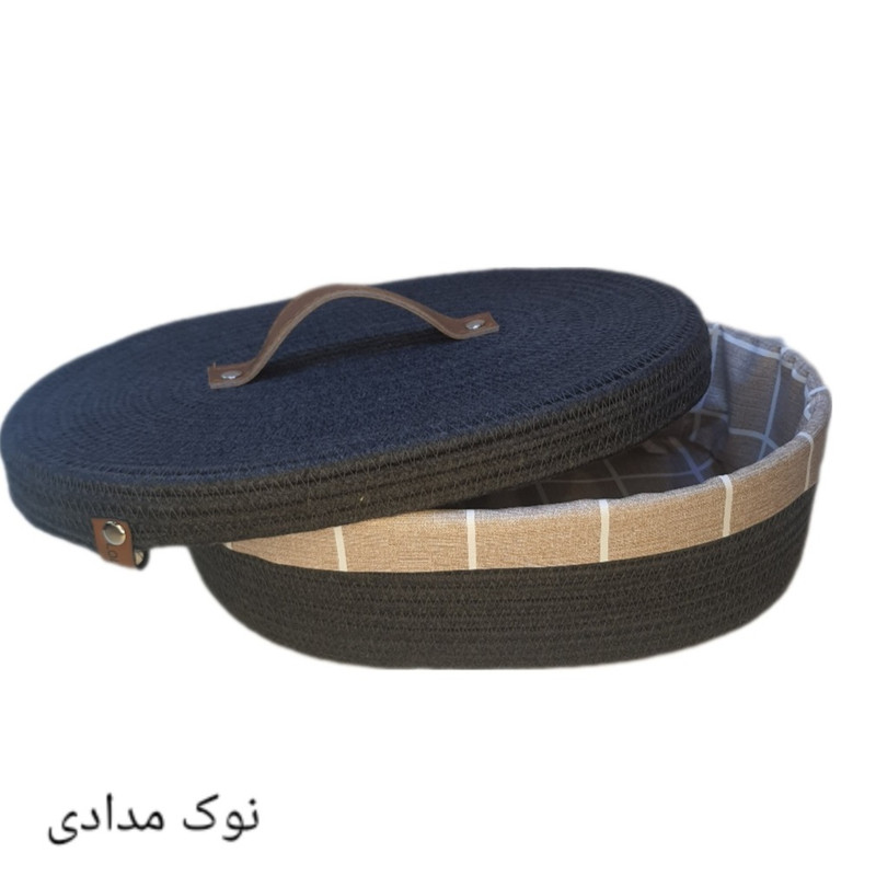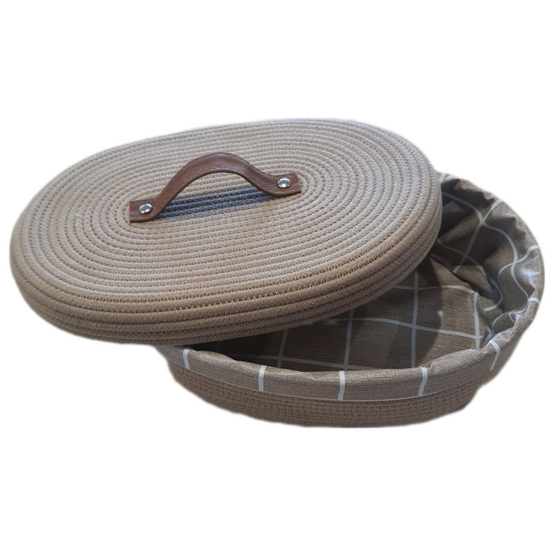 بدنه و درب این کالا از ریسمان قیطان پنبه ای ساخته شده است و داخل آن با سفره پلاستیکی ضخیم و با کیفیتی پوشانده شده تا مانع از خشک شدن نان شود.