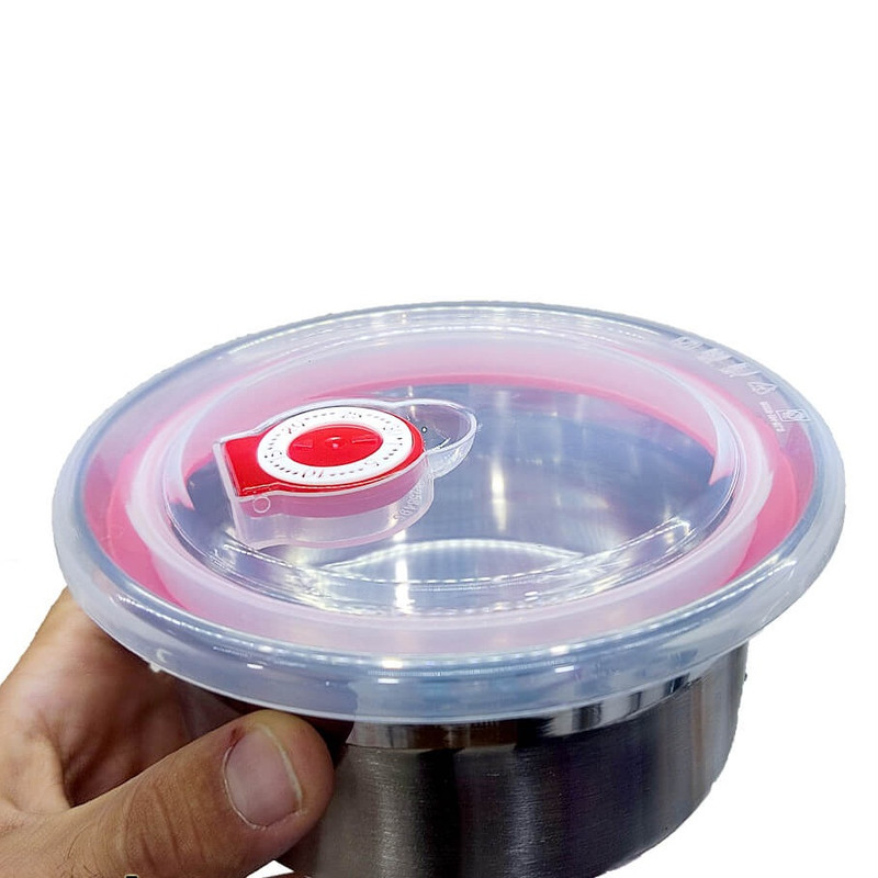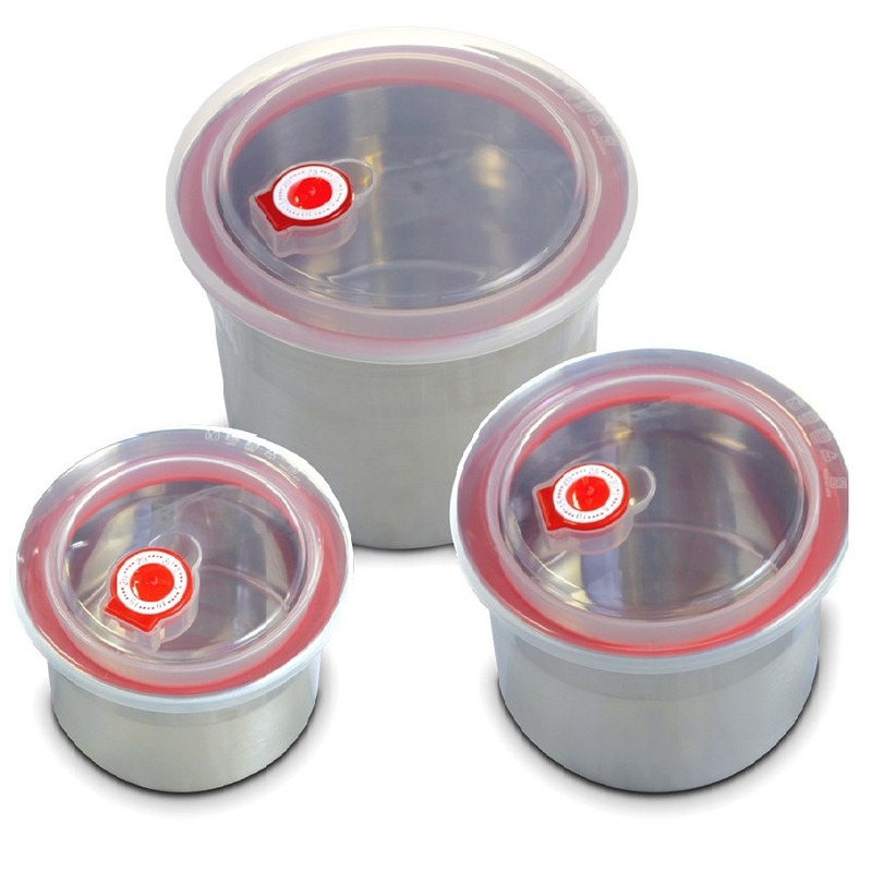 | سایر توضیحات | جنس: بدنه استیل اصل و ضد زنگ ...درپوش ژله ای سوپاپ دار مناسب برای: انواع مواد غذایی گرم و سرد....خشکبار...تنقلات...مایعات... سایر توضیحات: 3 سایز بسیار کاربردی و پر طرفدار ابعاد: سایز 14 ... 16 ....18...سانتی متر دارای نشانگر دستی بر روی درب به منظور مشخص کردن زمان گذشته شده از خرید و یا بسته بندی مواد داخل ظرف |