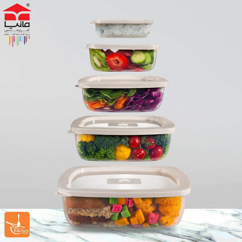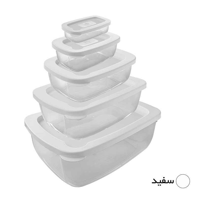| سایر توضیحات | - BPA Free - قابل بازیافت - تأییدیه انجمن نانو - ضد گرد و غبار - یک عدد ظرف نگهدارنده سایز یک به گنجایش 70 میلی لیتر، وزن 14 گرم و ابعاد 2.7 × 5.7 × 9.7 سانتیمتر - یک عدد ظرف نگهدارنده سایز دو به گنجایش 300 میلی لیتر، وزن 35 گرم و ابعاد 4.7 × 9.1 × 12.8 سانتیمتر - یک عدد ظرف نگهدارنده سایز سه به گنجایش 650 میلی لیتر، وزن 58 گرم و ابعاد 5.7 × 12.4 × 17.3 سانتیمتر - یک عدد ظرف نگهدارنده سایز چهار به گنجایش 1400 میلی لیتر، وزن 106 گرم و ابعاد 6.9 × 15.6 × 21.2 سانتیمتر - یک عدد ظرف نگهدارنده سایز پنج به گنجایش 2500 میلی لیتر، وزن 172 گرم و ابعاد 8.4 × 18.9 × 26 سانتیمتر |