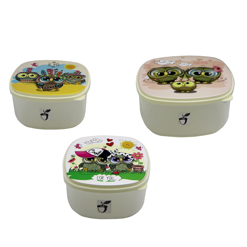 سایر توضیحات | - مجموعه 3 عددی ظرف نگهدارنده غذا مدل بلوط - طرح : جغد خانواده - طرح قالب : مربعی - طرح جالب کارتونی نگهدارنده میوه و غذا - در 3 سایز سایز بزرگ : 21.5x21.5x11سانتیمتر . متوسط : 18x18x9.5 سانتیمتر . کوچک : 15x15x8.5 سانتیمتر - جنس : پلاستیک فشرده ساخته شده از بهترین مواد درجه یک موجود در بازار - وزن : 425 گرم |