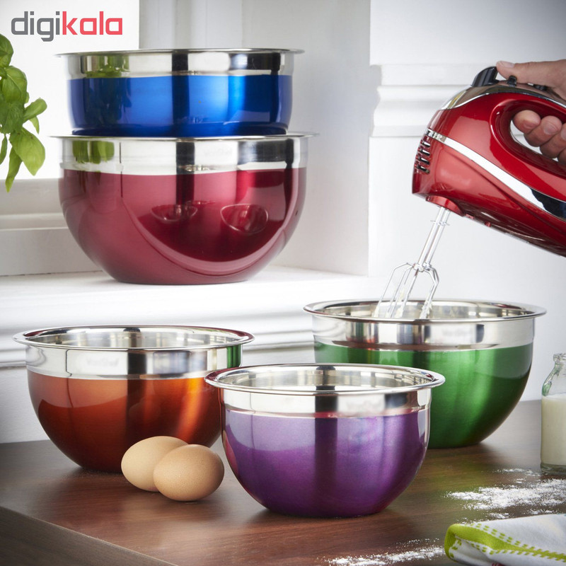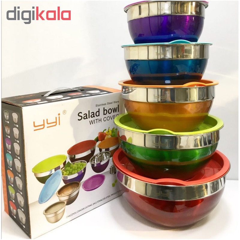 سایر توضیحات 5 عدد درب مجزا و رنگی 5 عدد ظرف استیل با ابعاد متنوع سایز ظرف اول: 26*26*12 سانتی متر سایز ظرف دوم: 24*24*11 سانتی متر سایز ظرف سوم: 22*22*10 سانتی متر سایز ظرف چهارم: 19*19*10 سانتی متر سایز ظرف پنجم: 17*17*10 سانتی متر