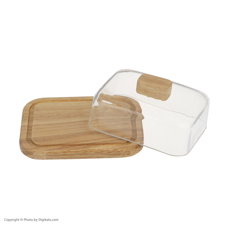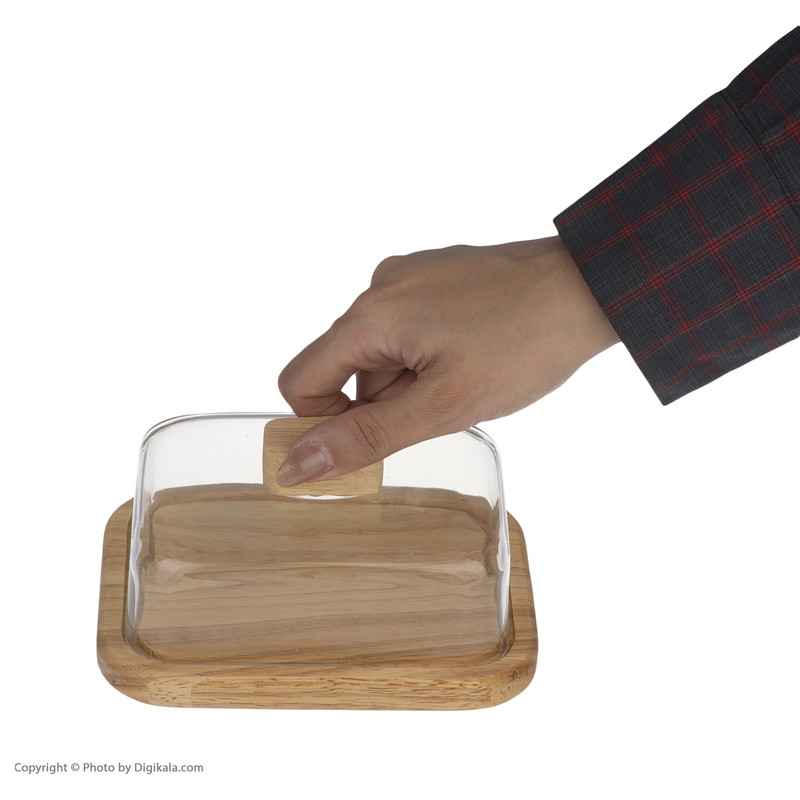 سرو مواد غذایی و پذیرایی از مهمان دارای آداب و رسومی است که رعایت آنها می تواند باعث ایجاد تجربه ای خوشایند و به یاد ماندنی برای مهمانان شما باشد. یکی از این آداب استفاده از ابزار و وسائل مناسب و شکیل برای پذیرایی است. ظرف کرده و پنیر خوری Nature کد 41125 از جمله وسایلی است که می تواند بخش زیادی از خواسته های شما را برای پذیرایی از مهمانان برآورده سازد. این ظرف با الهام از نمونه های مشابه از برندهای معتبر اروپایی و با توجه به نیاز و خواسته های مصرف کننده داخلی در کشور ایران ساخته شده است. کفی آن از چوب رابر وود ( Rubber Wood ) که یک چوب بسیار محکم , ریز دانه با نقوش زیبا وجود برخی حفره های طبیعی است و از لحاظ دانه بندی و وزن می توان آن را با چوب بلوط مقایسه کرد ساخته شده است که مقاومت بالایی داشته و در صورت نگهداری صحیح برای مدت های طولانی قابل استفاده می باشد. این بخش شکلی مستطیلی دارد و ابعاد آن حدودا 15x12 و ضخامت آن کمتر از 2 سانتیمتر می باشد. درب این ظرف که از جنس اکرولیک شفاف و با کیفیت ساخته شده و دارای دستگیره ای چوبی می باشد به خوبی روی آن قرار می گیرد و ظرفیتی معادل یک قالب بزرگ 250 گرمی کره دارا می باشد. برای نظافت آن فقط کافیست تا از دستمال کمی رطوبت دیده استفاده نموده و در صورت خیس شدن بلافاصله خشک نمایید.