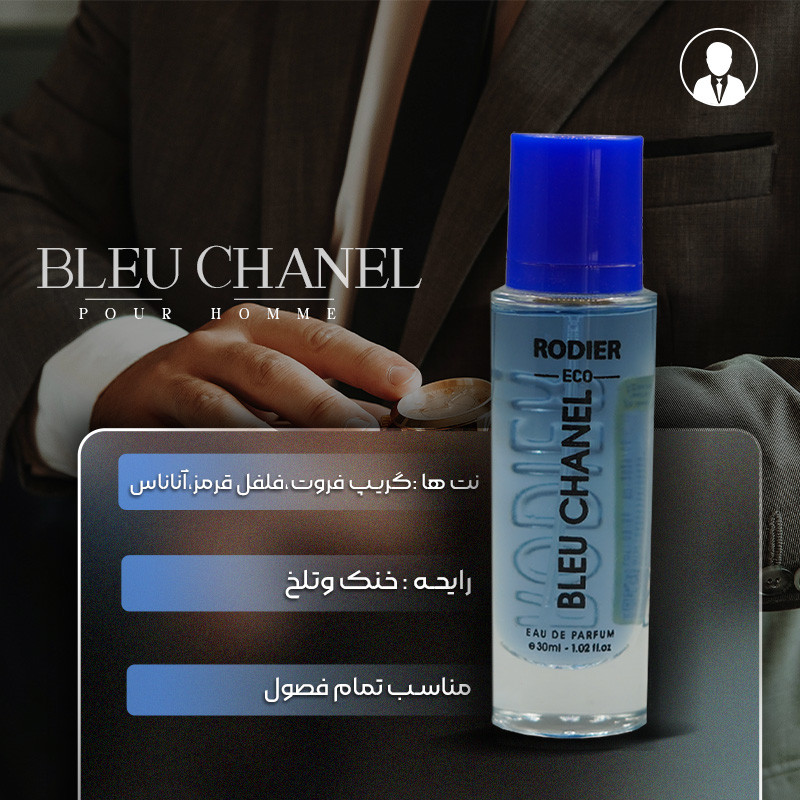 عطر جیبی مردانه رودیر مدل بلو شنل دارای رایحه خنک و تلخ است و برای تمامی فصول سال گزینه خوبی به شمار می رود. عطر فوق در هر مکان و زمانی مورد استفاده است. شما می توانید آن را در مناسبت های خاص، محل کار و قرار ملاقات های شبانه و عاشقانه استفاده کنید و همه را مجذوب خود کنید. عطر بلو شنل در یک محفظه شیشه ای و درپوش محکم نگهداری میشود و محافظ خوبی برای آن تعبیه شده است. از این رو می توانید آن را بدون نگرانی از نشت عطر، در هر مکانی حمل کنید. در یک کلام، بلوشنل انتخابی عالی برای شما است و برای مردانی که می خواهند اعتماد به نفس خود را افزایش دهند و جذابیت خود را به رخ بکشند، بسیار ایده آل است.