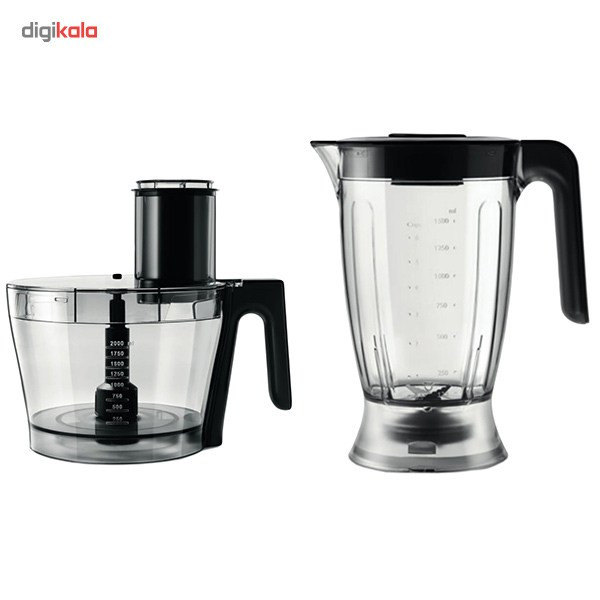 سایر ویژگیها | - مجهز به فنآوری PowerChop که امکان خرد کردن مواد نرم و سخت را فراهم می سازد. - کلیدهای از پیش تنظیم شده برای عملکرد خاص; خردکردن یخ، زدن خمیر و همزدن کرم - همزن دو قلو با کارایی بیشتر - دارای یک عدد دیسک چیپس ساز که از 1 تا 7 میلی متر قابل تنظیم است. - آبمیوه گیری با دهانه بسیار عریض -میزان صدا: 86 دسی بل |