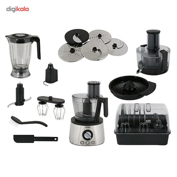غذاساز فیلیپس (Philips) مدل «HR7778» از قسمتهای مختلفی تشکیل شده و هر قسمت، نشاندهندهی یکی از قابلیتهای متفاوت دستگاه است. بدنهی اصلی دستگاه ظاهری زیبا داشته و پیچ تنظیم روی آن قرار دارد که قدرت دستگاه را در سرعتهای مختلف تنظیم میکند. حالت پالس یا لحظهای را هم برای مدل HR7778 در نظر گرفتهاند. طراحی این وسیله بهگونهای است که اگر هریک از قسمتهای دستگاه مانند ظرف مخلوطکن یا خردکن درست روی دستگاه نصب نشوند و در آن بهدرستی بسته نشود، موتور روشن نمیشود؛ بهاینترتیب بروز هرگونه خطر از بین میرود. ظروف مخلوطکن، خردکن و آبمیوهگیری پلاستیکی، شفاف و باکیفیت هستند. دیسکهای رنده و برشزن متنوع در این مدل به تهیهی مواداولیه و آمادهکردن آنها برای طبخ انواع غذا کمک میکنند. تیغهی خردکن از جنس استیل ضدزنگ است و هرچیزی را خرد و ریز میکند. پرهی همزن دوگانه برای همزدن سسها و خمیرهای سبک مناسب است. بهاینترتیب تهیهی شیرینی و سسهای متنوع ممکن میشود. کاردک پلاستیکی برای تمیزکردن و خارجکردن مواد ارائه شده است. همراه این مدل، متعلقات آبمرکباتگیری هم عرضه میشود. قسمت آبمیوهگیری که شامل تیغه و فیلتر است، همراه این مدل به خریداران عرضه میشود که میتواند میوههای خشکتر مانند سیب یا میوههای مشابه را آبگیری کند؛ مقداری از لرد و پالپ میوه هم وارد آبمیوه میشود تا هم طبیعیبودن آن مشخص و هم طعم آن بهتر شود. در این مدل، محفظهی نگهداری تیغهها و دیسکها عرضه میشود تا نگهداری آنها آسان باشد و آشپزخانه بههمریخته نشود. پایههای ضدلغزش زیر بدنهی اصلی، مانع جابهجایی و لرزش دستگاه حین فعالیت میشود. میزان صدای دستگاه هم زیاد نبوده و استفادهی روزانهی آن آزاردهنده نیست. درمجموع غذاساز HR7778، محصولی با ظرفیت و کیفیت ساخت بالا، توان مصرفی مناسب و قابلیتهای ویژه است که برای هر آشپزخانه، بهترین گزینه بهحساب میآید. در نظر داشته باشید