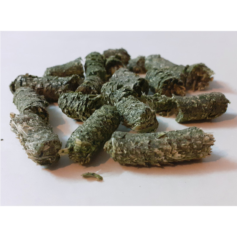 تشکیل شده از 100 % یونجه و بدون غلات - گلوتن و سویا میباشد. بهمراه درصد استانداردی هویج برای طعم دهی و تشویق جوندگان برای خوردن می باشد.