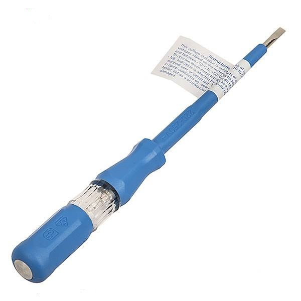 سایر توضیحات طول: 18 سانتی‌متر - گستره تست: از 100 تا 250 ولت - تیغه کاملا پوشیده شده طبق استاندارد VDE - میله با نوک سخت کاری شده - دارای استاندارد GS آلمان