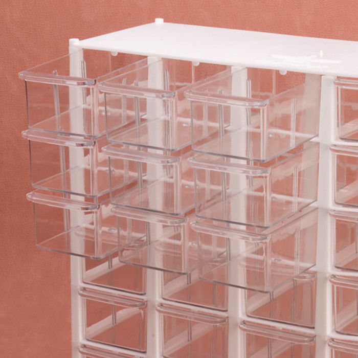 کشویی کریستالی (یا ارگانایزر) 35 کشو 7 طبقه مناسب نگهداری لوازم در فروشگاه ها، دفاتر اداری، آزمایشگاهها و انبارها، کارگاه، دفتر، تعمیرگاه و یا حتی منازل کاربرد دارد. در هر یک از طبقات 5 کشو شفاف دارد، بوسیله این کشوهای شفاف میتوانید به راحتی اجناس داخل آن را دیده و به جنس مورد نظر خود به سادگی دسترسی پیدا کنید. از این محصول برای نگهداری و تفکیک قطعاتی از قبیل میخ، پیچ، کلید، دکمه، سوزن و هزاران قطعه کوچک دیگراستفاده می شود. با استفاده از این محصول مشکل بی نظمی و گم شدن قطعات حین کار برطرف شده و موجب ایجاد نظم و ترتیب به دلخواه شما می شود.
