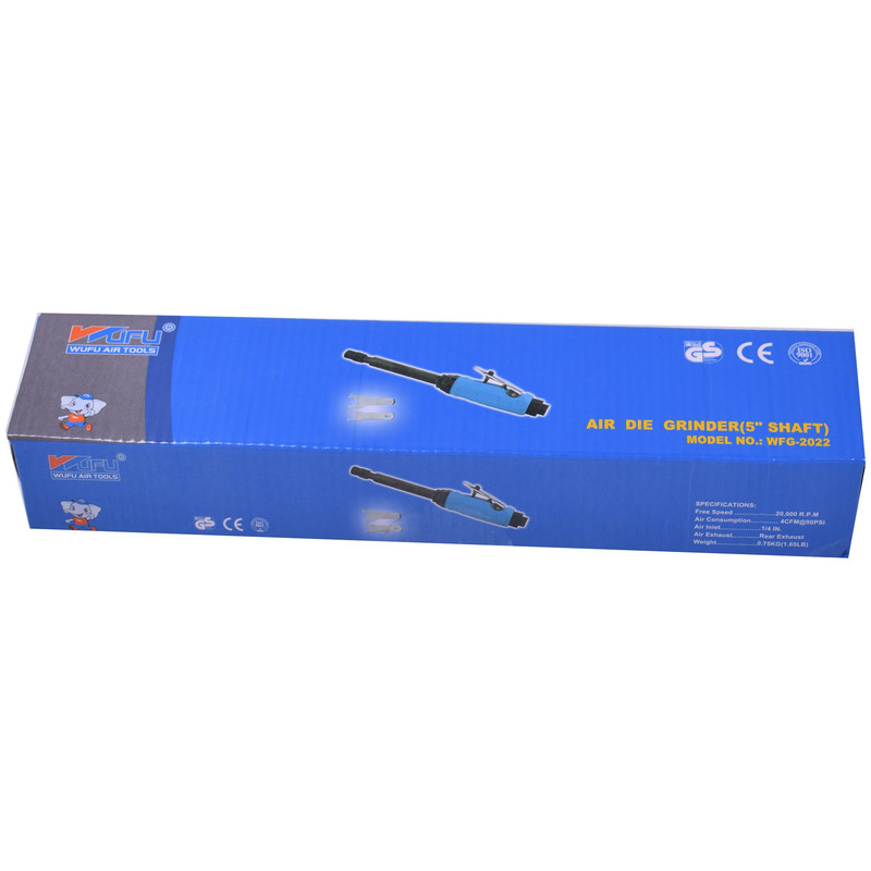 کمپانی ووفو یکی از قدیمی ترین و بهترین سازنده های ابزارآلات بادی در کشور چین به شمار می رود که کار خود را از سال 1979 آغاز نموده است . ظرفیت تولید این کارخانه به بالای 12 میلیون دستگاه در سال می رسد . به دلیل کیفیت ساخت بالا و قیمت مناسب این شرکت توانسته است اکثر محصولات خود را به قاره های آمریکا ، اروپا ؛ آسیا و استرالیا صادر نماید . فرز انگشتی بادی گلو بلند مدل WFG2022 از محصولات ووفو می باشد که سرعت گردش 20000 دور در دقیقه را داراست . بدنه این محصول بسیار خوش دست و ارگونومیک طراحی و ساخته شده است از این دستگاه می توان جهت برش، سایش و یا پولیش فلزات ، چرخ ها و ... استفاده نمود . به همراه این دستگاه کولت با سایز 3 و 6 میلی متر ، آچار و کوپلینگ ارائه شده است .