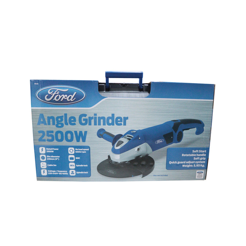 سایر توضیحات | - فرز سنگ بری فورد - قدرت موتور : 2500 وات - سرعت حرکت آزاد : 6500 دور بر دقیقه - دارای کابل 3 متری - اندازه سوراخ اتصال : M14 - برای کار با صفحات برش با قطر 230 میلیمتر طراحی شده است. - دسته جانبی ضد لرزش طراحی شده - دارای کیف پلاستیک مقاوم |