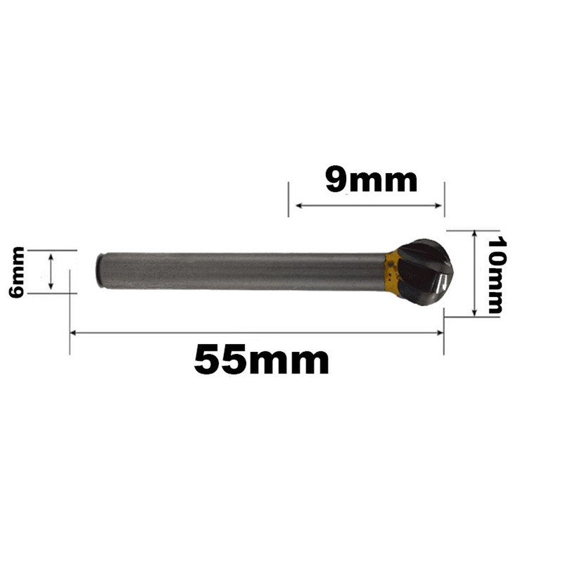 فرز الماس تک شیار کروی یا توپی دارای طول ۱۰ میلیمتر و قطر سر ۹ میلیمتر می باشد.