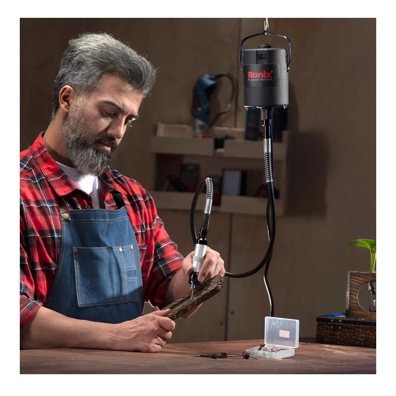 شلنگ سه نظامدار فرز مینیاتوری 3451 رونیکس باعث میشود تا بتوانید با آن مانند قلم کار کرده و سطوح مختلف را حکاکی کنید. همچنین، میتوانید با پدال پایی به راحتی سرعت ابزار را کنترل کرده و آن را خاموش و روشن کنید. به این ترتیب، با دستان آزاد تسلط بیشتری روی قطعهی کار خواهید داشت. قلاب فرز مینیاتوری پدالی سه نظامدار 3451 رونیکس، قابل نصب روی دیوار و سقف است و کار را برای کاربران آسانتر میکند.