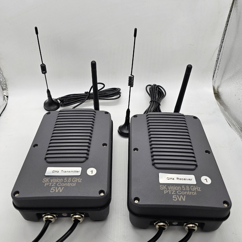 فرستنده گیرنده تصویر 5w با قدرت 5000m و دارای قابلیت انتقال سیگنال PTZ کنترل بدین معنا که شما میتوانید با این دستگاه دوربین های چرخشی خود را از طریق پورت ۴۸۵ از راه دور کنترل نمایید این فرستنده و گیرنده ضد آب بوده و مناسب برای استفاده در محیط بیرون استفاده کنید به صورت هوایی و توسط دستگاه انتقال بی سیم صدا و تصویر AV می توان تصویر و صدای دستگاه هایی مانند دوربین مداربسته یا فیلمبرداری ،سی دی پلیر ، ویدیو ، ماهواره ، دستگاه گیرنده دیجیتال تلوزیون و … به صورت بی سیم به نمایشگرهایی مانند ویدیو پرژکتور ، تلوزیون ، DVR که ورودی av دارند منتقل کرد دستگاه انتقال بی سیم صدا و تصویر AV مدل 5000m دارای قدرت فرکانس انتقال تصویر 1.2GHz است به همین علت تداخل کمتری با دستگاه های اطراف خود دارد و تصویر یدون نویزی به شما میدهد قابلیت انتقال تصویر تا 5000 متر یا 5 کیلومتر مربع بدون مانع را دارد