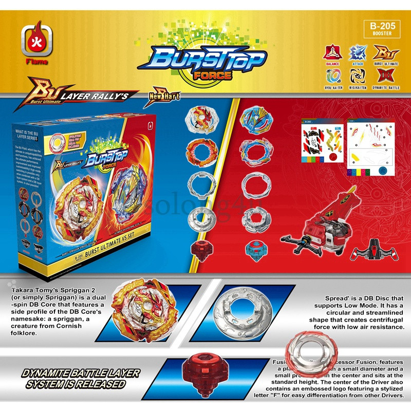 سایر توضیحات این پک شامل : 1 عدد لانچر تسمه ای شمشیری فصل 7 2 عدد زیره فرفره های اسپرایزن و والتریک 2 عدد تیغه فرفره های اسپرایزن و والتریک 2 عدد صفحه فرفره های اسپرایزن و والتریک 1 عدد گادلایر فرفره دیوین بلفایر ( در صورت داشتن فرفره استفاده میشود)